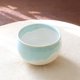 在将汤杯塑造成圆润的形状后,整体施以光泽的白色釉料,再叠加一层水蓝色釉料。