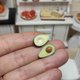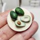 Slices of ripe avocado. This is a realistic miniature for a dollhouse, restaurant game or collection. The whole composition is made of polymer clay.