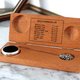喜欢葡萄酒的朋友大概也对法国不同酒区有认识,这套品酒套装非常能代表法国,亦很适合送礼。实木木盒上着“Degustation du vin”,意思是品酒用。打开里面有两种专业用具,包括一个带有银制葡萄装饰的温度计和酒环。酒环是用来套在酒樽颈上,在倒酒时防止酒滴,盒内上方还印有了主要法国葡萄酒的适饮温度。