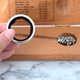 2. 将温度计穿过酒樽浸入酒中,它的银制葡萄装饰会卡住防止温度计掉下。