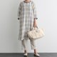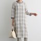细腻格纹长洋装|100%亚麻|九分袖|200904-2