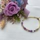 水晶选用紫云母(爱情之石)/草莓晶/月光石/拉长石(灰月光石)/天然珍珠。花束的主花选择紫色玫瑰与紫云母互相辉映,再以粉色与皇家蓝点缀其中,右边的两片白色羊齿蕨象征守护爱情的翅膀,祝福大家。💜💙🤍💕