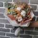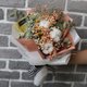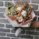 - 由棉花.尤佳利.迷你玫.金仗球.干燥满天星制作而成的花束 花束花面宽约18-22cm 高约34-38cm(含包装纸) 每款包装及花材不同,花面宽度高度都是抓大概唷~请见谅