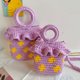 包主体用6mm宽扁带纱线手工钩编。与设计馆另一款主要制作材料环保纯棉棉带相比,扁带纱线做出的成品更为薄、轻和柔软,但没有棉带做出的成品硬挺和耐磨,比较容易起球,请知悉。