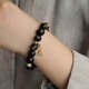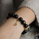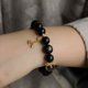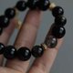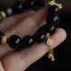 精品。天然黑曜石 尺寸约12-14mm 黑中带金气 非常特别 搭配茶水晶 阿塞晶体 黑发晶 纯银鎏金降魔杵微镶锆石 点缀原矿绿松石穗穗 - 客制手围:皮尺绕手腕最细cm:请勿加大 - 生命灵数0