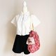 附有梅花图案的迷你束口袋,可收纳钥匙等小物。