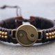皮革串珠手链男士男女皆宜的魅力黄铜阴阳符号可调整