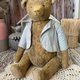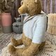 2 The bear is made of plush. Height 32 cm. Colored glass eyes. Filler: sawdust, wood wool, metal granulate. The head and paws spin 360' fixed with cotter pins and discs using the classic Teddy technology. The bear can sit confidently. Batista jacket, can be removed