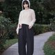 面料采用防水、耐用的的聚酷纤维,有一定厚度,经过抗静电和固色处理,方便打理。版型上把整体围度设计得非常大,档位较低,松紧腰加本布抽绳,穿着舒适轻松,裤脚侧面圆弧形设计,正面视觉上矫正腿型不显胖。后面贴袋有精致的logo双目梅花刺绣。口袋和裤脚处都有撞色打枣线圈,加固裁片的同时,生动有趣。可穿季节性多,是日常出行散步的好搭档。