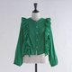 从前襟延伸至后摆,一圈华丽的荷叶边设计,增添了丰富的层次感。