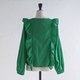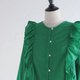 莫斯林布料的轻柔垂坠感,与荷叶边的设计完美融合。