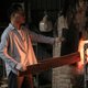 随着舞动的火流覆盖沾粘在作品上与土矿共溶产生的流动质感,
