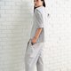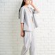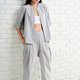 上宽下窄的裤型绝对是这几年的主流,不仅可以修饰身形,还超舒适好活动;在设计上将原本工装的袋口倾斜,并抓了合折,看起来袖身又时尚,腰头有松紧带细节,好穿也好活动。布料是使用日本制的微挺灰色条纹布,舒适透气可四季穿,当然也能机洗好保养。