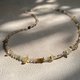 由彩发晶、黄水晶、虎眼石、细致纯银粒所编织而成的黄色系天然矿石颈链。