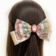 以带有怀旧感的碎花条纹布料制成的大尺寸蝴蝶结发夹。
