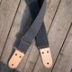 在上吉他背带时,先将洞口边缘以清水打湿,等待半干时将皮革前后扳软在扣上吉他。