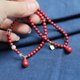 **朱砂饰品无金属、植物类(比如木质、竹子、菩提籽... ...)等配件的情况下,可以适当沾水,但不适合长期浸泡,会影响光泽度。**