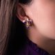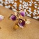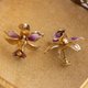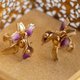 - 美国古董,彩绘渐层紫立体兰花,淡金色耳栓