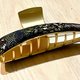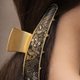 此款“影扇”选用深色系织锦缎,以褐、黑为底,交织低调金线,扇面、植纹与点状纹理层层堆叠,如夜色中展开的静谧风景。