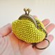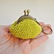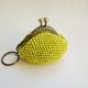 黄色零钱包,钩织珠饰开合零钱包,可放零钱的小钱包,附钥匙圈