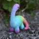 使用彩色手染羊毛制作的雷龙,颜色是粉嫩柔和的糖果色系