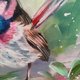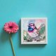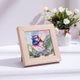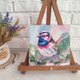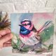 这是一幅以硬纸板为画布、尺寸为 15 x 15 厘米的缤纷小鸟油画。这幅小鸟画作采用厚涂技法,立体的笔触让画面生动且富有现代感。这幅色彩鲜艳的原创小鸟画作能点亮您的居家空间,亦可成为赠送亲友的难忘礼物。