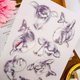 需自行裁切外型,輕柔地移除透明膜,此時轉印貼紙會連同透明膜一起被剝離起來,將其覆蓋在目標物上,用手(或是信用卡)將其推平後,慢慢地撕開透明膜即可。