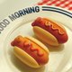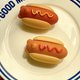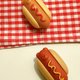 热狗熊分成两种酱料(番茄酱、黄芥末)