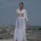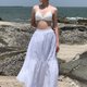 - 2-layer fabric skirt, flared shape, elastic waist, pockets on both sides, wrinkled nylon fabric, quick-drying properties. easy to maintain "Do not rely on the iron" designed for convenience. simple but good looking Can be worn often and for many occasions See-through white, recommended to match with swimwear or bikinis. Because the fabric has translucent pr