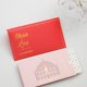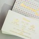 卡套是原色原纸(250磅),表面光滑,正面大城堡及背面小城堡印刷6个PANTONE及心型钥匙孔烫金增加不一样的层次;白色的卡片(1100磅)呼应卡套小城堡的6个色系圆点及烫金一大把的钥匙;信封采用现代特有花边翻盖,为橘红色;贴纸是高黏度高厚度烫金心型钥匙孔贴纸。