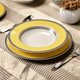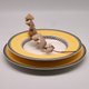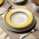 Villeroy & Boch 德国唯宝在国际瓷器界有着响亮的名号:完美结合了永恒的法式经典设计与传统的德国工艺品质,采用精心挑选的原料,再由精湛的技艺打造而成。Audun 奥顿系列便是VB对品牌根源的敬意,灵感来自于铜版印刷;在顶级餐瓷上以烟灰色的格纹装饰加上鲜黄色互成对比,图样则是讲述当时的田园风情,及对过去美好年代的追忆情怀。