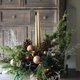 ● 材料:进口诺贝松、新鲜雪松、各式松柏类、手工裱布花器、LED灯串、花艺海绵、天然干燥素材