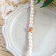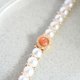 精心手编的巴洛克珍珠,中央点缀着美丽的日长石作为主石。