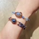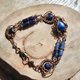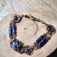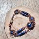 蓝晶石(主石)手链,配石为方钠石(切面碟型珠与长条珠)和堇青石(切面珠),线材为纯铜线仿旧处理,扣头为黄铜。