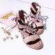 **日常小古着!Q弹双拼皮料后拉链凉鞋 杏色**
