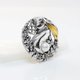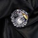 运用了24k烧赋金箔技法(Keum-Boo),在兔子耳朵的内部点缀金色,增添了作品的层次感和精致度。硫化染黑后凸显颜色对比增添复古风格,让兔子形象更加立体和丰富。质感柔和光滑的珍珠诠释尾巴为作品注入了一份纯净优雅的气息和奢华感,圆滚滚的眼睛是由红石榴宝石制成,它所象征的勇气、力量和智慧,赋予了作品更多的个性和意义。