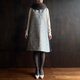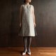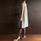 It is a sleeveless A-line, knee-length combination dress (model is 157m tall). The neckline is a boat neck both front and back. I put it on and take it off with a back button (one).