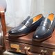 便仕乐福鞋 Penny Loafer 源于1930年代 ,从John Bass开始制作带有一条皮带横跨在鞋面上的鞋款,并取名为“Weejuns”。