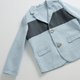 柔软又硬挺的组织纹路布料,搭配上胸前剪接的牛仔布料,