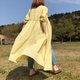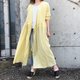 A cache-coeur dress made of Yangyanagi fabric, which has a spring-like mimosa color and is very soft to the touch. It's a bright but subdued yellow color that makes it easy to coordinate while enjoying the summery feel. It is very comfortable to wear because it uses a high-quality fabric called Chijimi Takashima. It is the perfect item for sunburn protection that can be used as a cache-coeur dress or as a light coat. It is a type that can be styled up and the waist strap can be squeezed. This cache-coeur has a pocket. ◼︎ size Length: 117 cm Width: 52 cm Sleeve length: 75cm Only one size is sold. Length up to -10 cm is free of charge, so if you wish, please enter "-○ cm desired" in the remarks column. If you want to lengthen the length, you will be charged separately. The price will change depending on the length, so please be sure to consult us before purchasing. * The model in the photo is 159 cm and has a slightly longer arm. ■ Material cotton 100% * Please use a cleaning net when washing. * Please be careful not to get caught.