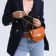 The “Faith Moon Convertible Waist Bag” is small but expands with an accordion gusset. The flap is secured with an oversized half moon metal closure. Convert the belt bag into a cross body style with a thin rope chain shoulder strap. It's made of Italian cowhide leather, certified by CONSORZIO VERA PELLE ITALIANA CONCIATA AL VEGETALE.