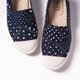 在京都的街头,小花偶然和这块花布相遇了!小花看着这些点点就像拼盘游戏,在布面上呈现出各样活泼、缤纷的样貌,而底部的浓绀色花布,增加了一点点沉稳的感觉,今年秋冬穿上稍微厚实的长洋装后,穿上这款舒适的鞋子,一样和谐而有趣。