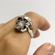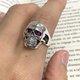 Large Victorian Gothic Style Skull Ring with Ruby Stone 925 Sterling Silver