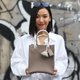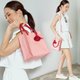 纸袋造型设计,使用皮革制作,搭配流苏花朵造型吊饰与 Theorem 可爱 logo 标签。