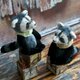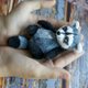 - Small (13 cm with the tail), fits in the palm, very good-natured fellow, although cunning, of course ... Sewn from viscose, tightly stuffed with sawdust, except for a belly and a tail! Tail is soft with sintepon inside. Belly is stuffed with metal (for weight) and rubber (for fun of poking into a belly) granulate. On the neck - a handmade silk ribbon scarf.