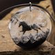 吊坠由黑色角木和带有白色条纹的透明珠宝树脂制成。 在黑暗中发光!