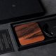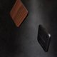 使用北美进口天然胡桃木,由师傅手工细磨后在均匀涂上护木蜡,表面无喷漆,可闻到淡淡的胡桃木香气,在科技中加入一点温暖的天然素材,底壳采用Apple原厂同级阳极处理铝合金,质感细腻滑顺,也可帮助充电时快速散热。