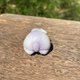 紫白玉是致密的锂云母岩,最初发现于新疆,色彩好看、产量少,市面少有大物件。紫色的浓淡变化有丁香紫、玫瑰紫、紫罗兰,直至灰、白色不同层次。而我们的小手捻,则是特选白如雪与丁香紫两种主色调,做成柔和悦目、色彩淡雅的小团兔。