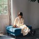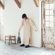 It’s made of a cotton that’s loose and flowy. This dress has a relaxed fit in midi length that’s not constricting at all.