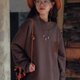 棕咖色 純棉衛衣基礎款上衣 寬松長袖休閒T恤